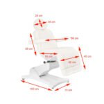 Dieser elektrische Kosmetikstuhl ist ideal für Schönheitssalons und Spas. Dank seiner unabhängigen Motoren lässt er sich per Fernbedienung in vier Richtungen verstellen und ermöglicht so die Durchführung von Gesichts- und Körperbehandlungen. Der Stuhl verfügt über eine innovative Funktion: Der Sitz lässt sich um 90 Grad nach rechts und links drehen. Mit der Fernbedienung können Sie die Höhe, die Rückenlehne und die Fußstütze einstellen sowie den Sitz in eine Liegeposition bringen.