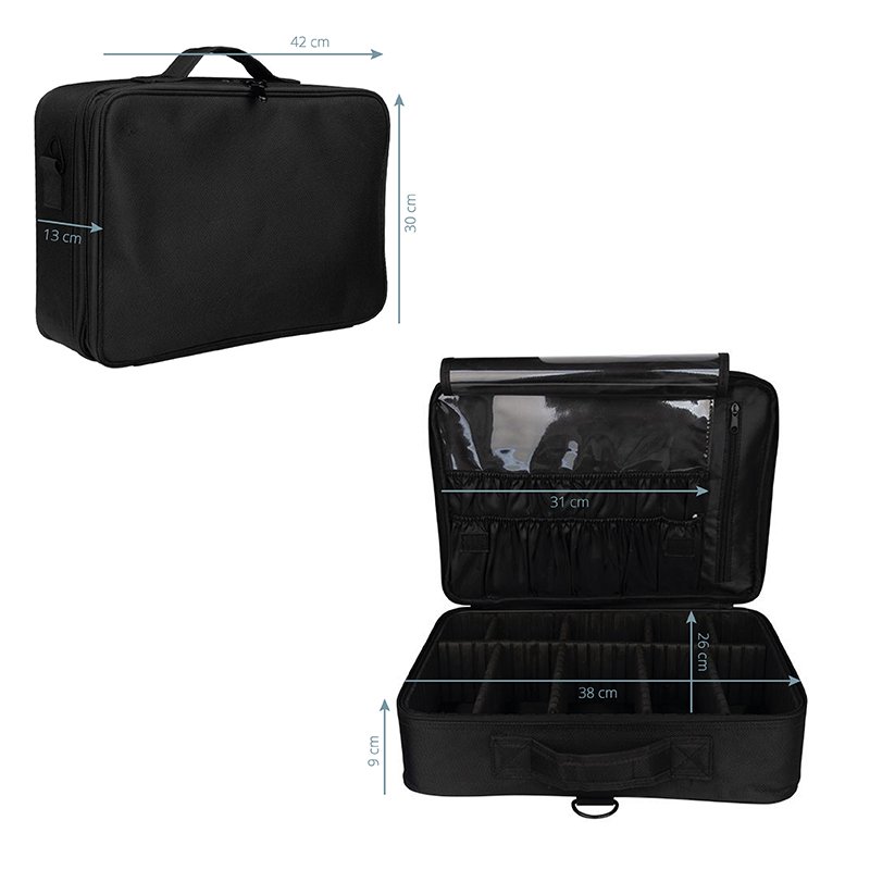 Dieser elegante Koffer ist aus strapazierfähigem Material gefertigt. Er verfügt über einen Tragegriff und einen Schultergurt. Im Inneren befinden sich verstellbare Trennwände, sodass Sie die Aufteilung individuell an Ihre Bedürfnisse anpassen können. Ideal für den Transport einer Fräsmaschine, eines Haartrockners und des dazugehörigen Zubehörs.