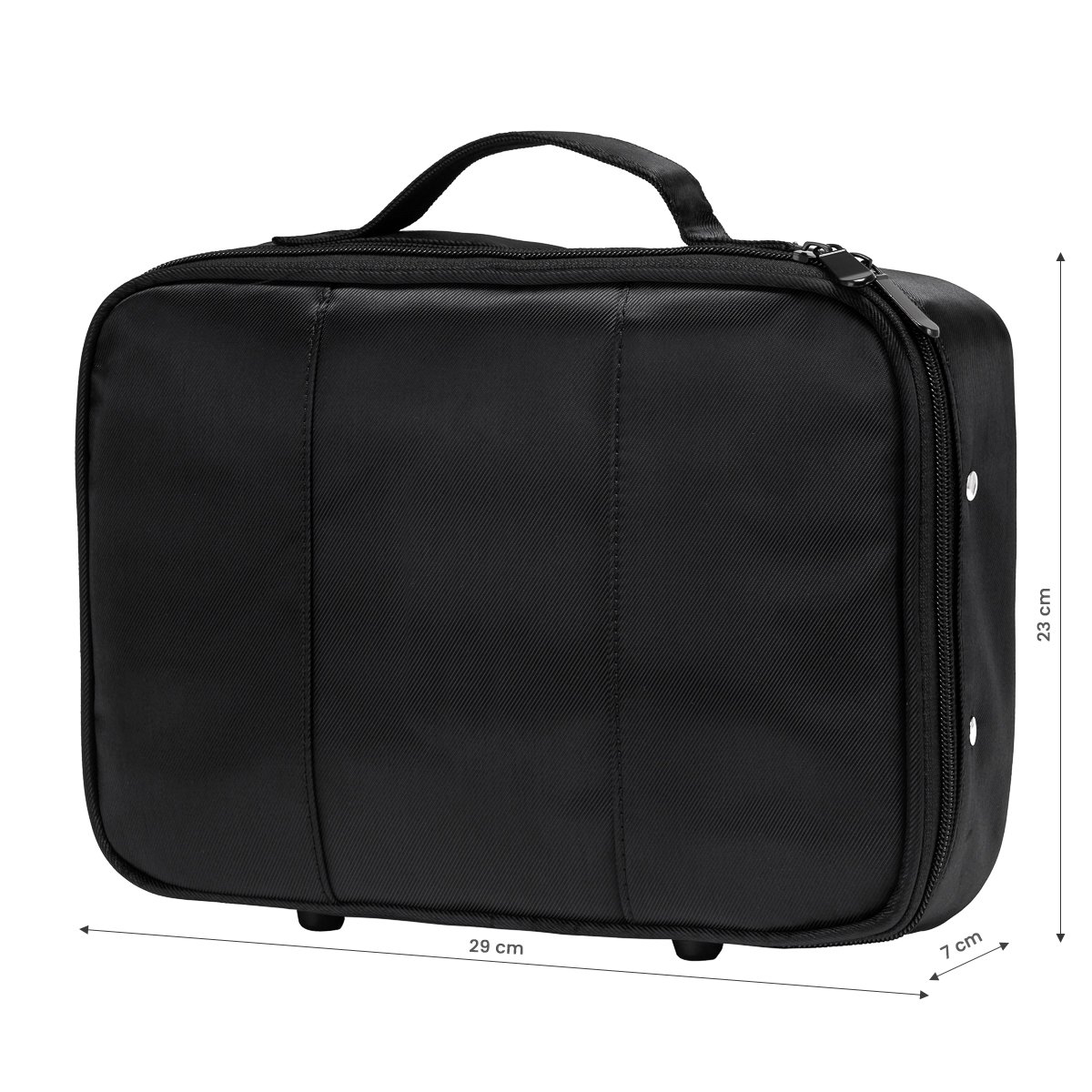 Ein praktischer Organizer für Friseurzubehör. Dieser geräumige Friseurkoffer ist ideal für mobile Stylisten und erleichtert die Arbeitsorganisation. Er bietet viel Platz für alle wichtigen Produkte und Accessoires und ermöglicht einen bequemen Transport. Zahlreiche Fächer und Schlitze sorgen für Ordnung. Alle wichtigen Kosmetikartikel und Werkzeuge sind darin verstaut und während der Arbeit schnell und einfach griffbereit. Der Koffer ist die ideale Lösung für Profis und bietet viel Platz für Scheren, Kämme, Bürsten und weiteres Friseurzubehör. Praktische Sicherheitsvorkehrungen im Inneren sorgen dafür, dass Ihre Werkzeuge auch beim Transport sicher sind. Mit dem Toni&Guy Koffer haben Sie Ihre wichtigsten Werkzeuge immer griffbereit, und der stabile Griff erleichtert das Tragen. Hochwertige Materialien garantieren maximale Langlebigkeit und einfache Reinigung. Die genauen Maße sind auf dem Foto abgebildet. Die Fotos dienen nur der Veranschaulichung. Der Koffer wird leer verkauft. Farbe: Schwarztöne.