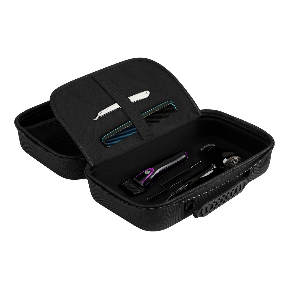 Ein praktischer Organizer für Friseurzubehör. Der geräumige Friseurkoffer T-08-1 ermöglicht optimale Organisation, bequeme Aufbewahrung und schnellen Zugriff auf Ihre Werkzeuge.