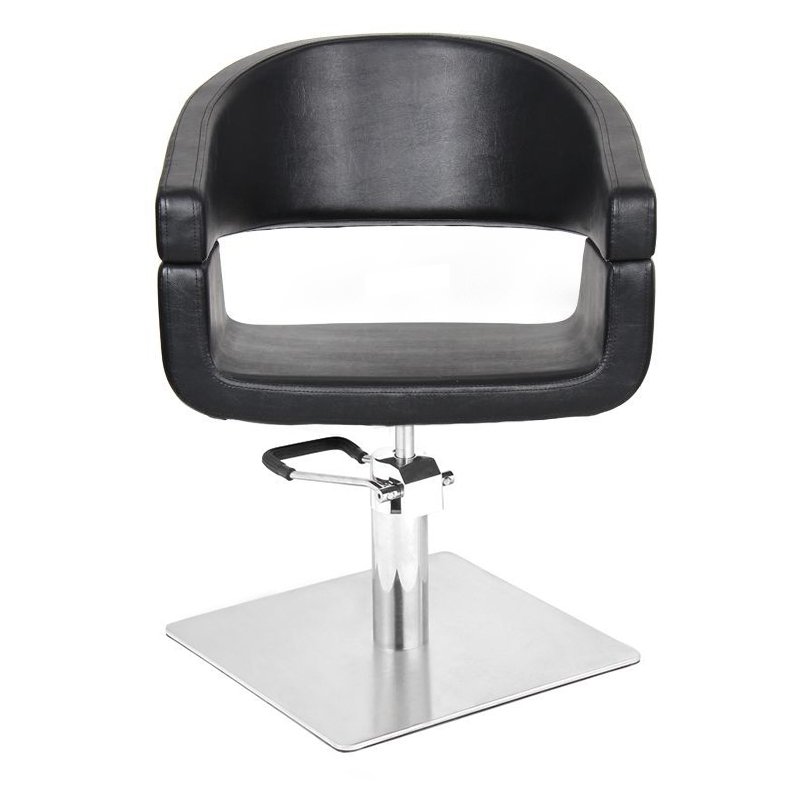 Ein moderner Friseurstuhl mit einzigartigem Design. Sehr komfortabel und ideal für moderne Salons. Die ergonomische Formgebung sorgt für eine bequeme Sitzposition während der Behandlung. Höhenverstellbar. Sehr stabil und robust. Bezogen mit hochwertigem Kunstleder. Schwarz.