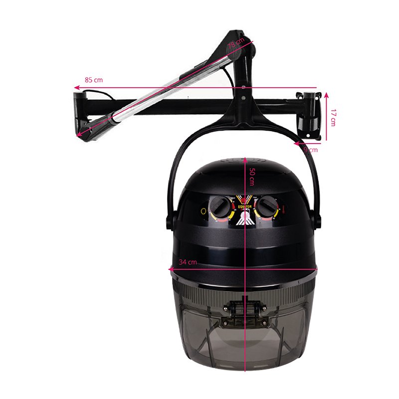 Gabbiano 1600 Haubenhaartrockner, Heizelemente aus Edelstahl, Temperaturregelung bis 75 °C, Zeiteinstellung von 0–60 Minuten, Leistung 950 W. Haubenhaartrockner gehören zu den markantesten Geräten in Friseursalons und sind in nahezu jedem Salon zu finden. Sie trocknen nicht nur nasses Haar, sondern eignen sich auch für verschiedene Haarbehandlungen. Moderne Haubenhaartrockner pflegen das Haar zusätzlich. Sie sind häufig mit einer Ionisierungsfunktion ausgestattet, sodass das Haar nach der Anwendung vollständig von elektrischer Ladung befreit ist. Dadurch ist es direkt nach dem Trocknen widerstandsfähiger und leichter zu stylen. Es wirkt außerdem sofort glänzender – die Ionisierung schließt die Haarkutikula und sorgt so für glatteres, glänzenderes Haar.