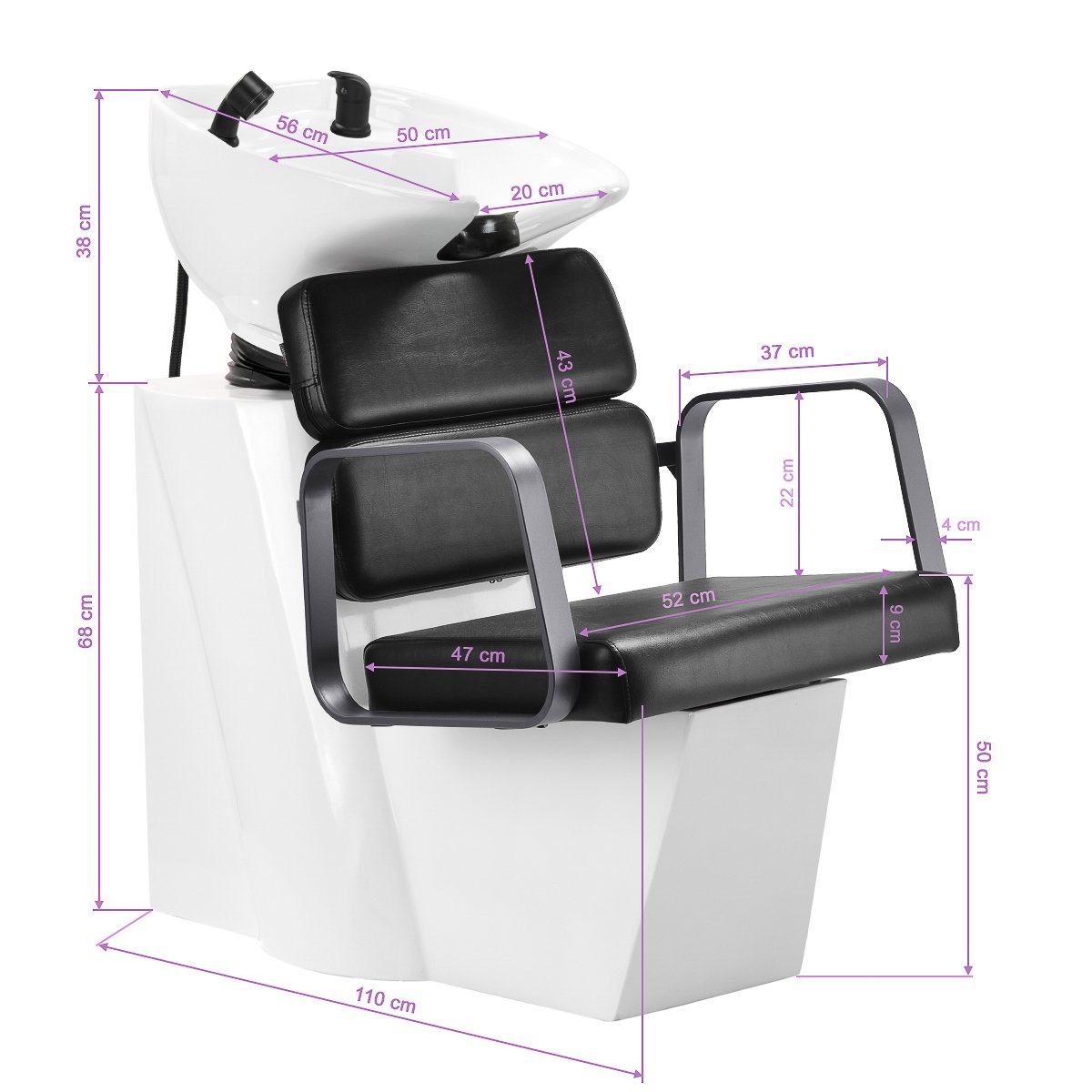 Gabbiano ist eine Luxusmarke für Friseurausstattung und -möbel, die sich durch Zuverlässigkeit, Qualität, ästhetische Verarbeitung und hohen Bedienkomfort auszeichnet. Das Sortiment umfasst eine große Auswahl an funktionaler Salonausstattung, darunter Sessel, Waschplätze und Infrarotzonen. Der elegante Gabbiano Porto Waschplatz ist ein stilvolles Element für jeden Friseursalon und wurde mit Blick auf die praktischen Bedürfnisse professioneller Friseure entwickelt. Er optimiert grundlegende Haarbehandlungen wie Waschen, Färben und Pflegen. Das integrierte Design sorgt für Komfort für Friseure und Kunden, während der optisch ansprechende Sessel dem Interieur eine besondere Note verleiht. Ein stilvolles Waschbecken für mehr Komfort. Die optimale Tiefe des weißen Keramikbeckens verhindert übermäßiges Spritzen von Wasser oder Pflegeprodukten und ermöglicht so die komfortable und effiziente Durchführung verschiedenster Dienstleistungen. Der Winkel des Beckens ist verstellbar und lässt sich so individuell anpassen. Die hochwertigen Materialien machen das Waschbecken langlebig, farbbeständig, kratzfest und besonders pflegeleicht. Der konturierte Kragen und die angewinkelte Rückenlehne bieten Halt und Komfort beim Haarewaschen. Dank der komfortablen schwarzen Kunststoffabdeckung spüren Kunden die kühle Keramikoberfläche nicht. Praktisch: Dieses Waschbecken ist mit einer Mischbatterie ausgestattet, die den einfachen Zugriff auf warmes und kaltes Wasser ermöglicht. So lässt sich die Temperatur individuell an die Kundenwünsche anpassen. Eine praktische Halterung für den Handbrausekopf optimiert die Arbeitsabläufe, während ein verchromter Stöpsel mit speziellem Sieb die Wassermenge reguliert und hohe Hygienestandards im Salon gewährleistet. Der Wasseranschluss befindet sich im Sockel und ermöglicht so eine effiziente Verlegung der Leitungen. Ein weiterer Vorteil dieses Modells ist die Öffnung zwischen Rückenlehne und Sitzfläche. Sie erleichtert die Reinigung im Salon, da Schmutz von jeder Ecke des Stuhls einfach entfernt werden kann. Die Waschstation ist ergonomisch geformt und bietet Komfort bei verschiedenen Behandlungen sowie optimale Rückenunterstützung. Die Kombination aus Funktionalität und Komfort macht die Arbeit im Friseursalon noch angenehmer. Funktionale Möbel in modernem Design. Der konturierte Sessel bietet optimale Lendenwirbelstütze und sorgt so für hohen Sitzkomfort. Geometrisch geformte Metallarmlehnen in Grautönen ermöglichen eine optimale Schulterpositionierung. Strapazierfähige, formstabile Schaumstoffpolsterung und ein weicher Kunstlederbezug in Schwarztönen garantieren Langlebigkeit, einfache Reinigung und dauerhaften Komfort. Das originelle, elegante Design der Waschstation verleiht jedem Interieur eine besondere Note. Das Set beinhaltet alle Armaturen in Schwarztönen, darunter Wasserhahn, Duschkopf und passende Schläuche – alles, was Sie für die tägliche Reinigung benötigen. Detaillierte Maße finden Sie auf dem Foto. Material des Beckens: Keramik. Farbe des Beckens: Weißtöne. Farbe des Bezugs: Schwarztöne. Farbe der Metallelemente: Grautöne. Farbe des Gestells: Weißtöne. Farbe der Armaturen: Schwarztöne. Bezugsmaterial: Kunstleder.