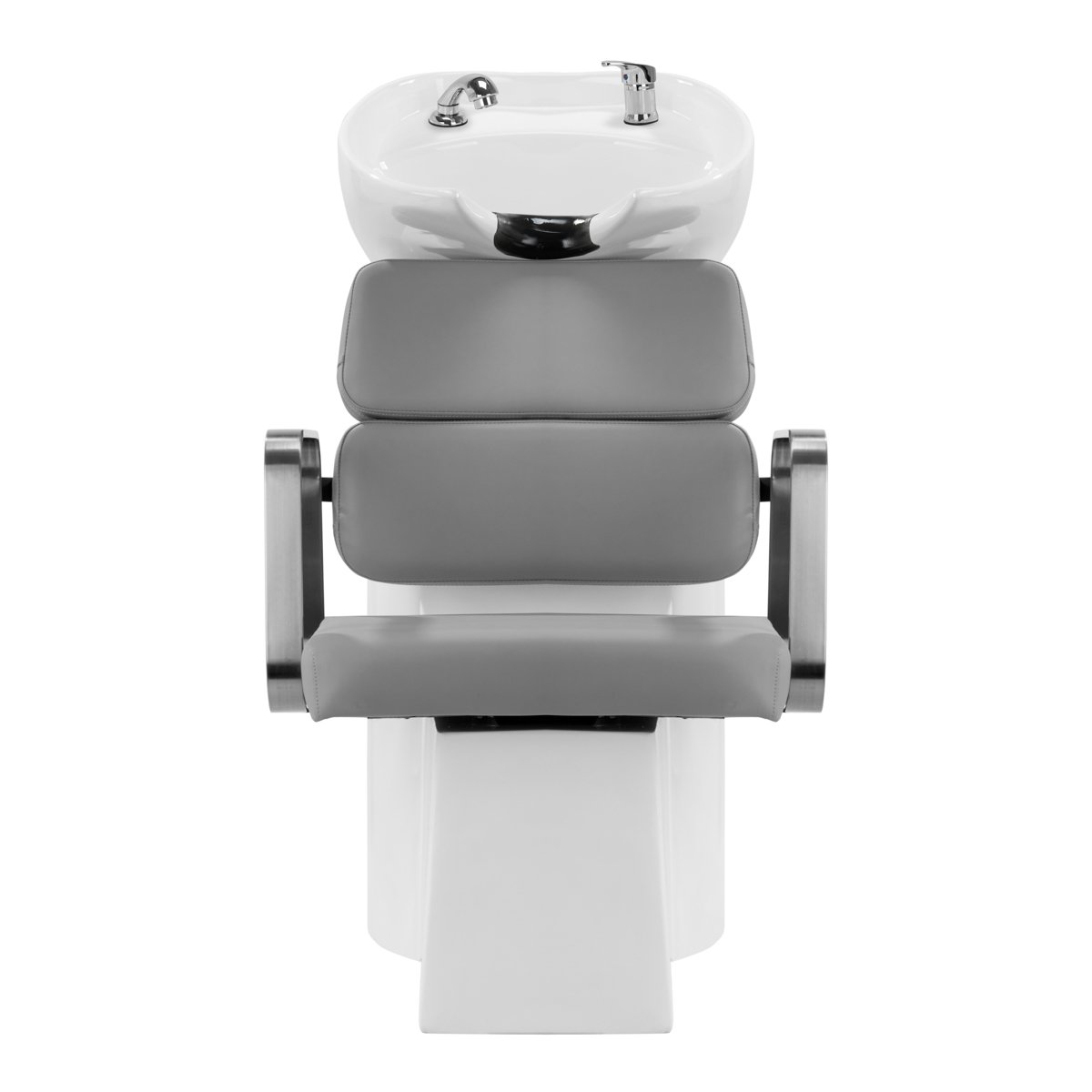 Gabbiano ist eine Luxusmarke für Friseurausstattung und -möbel, die sich durch Zuverlässigkeit, Qualität, ästhetische Verarbeitung und hohen Bedienkomfort auszeichnet. Das Sortiment umfasst eine große Auswahl an funktionaler Salonausstattung, darunter Sessel, Waschplätze und Infrarotzonen. Der elegante Gabbiano Porto-BM Friseurwaschplatz, ein stilvolles Element für jeden Friseursalon, wurde speziell für die Bedürfnisse professioneller Friseursalons entwickelt. Er optimiert grundlegende Haarbehandlungen wie Waschen, Färben und Pflegen. Das integrierte Design sorgt für Komfort für Friseure und Kunden, während der optisch ansprechende Sessel dem Interieur eine besondere Note verleiht. Ein stilvolles Waschbecken für maximalen Komfort. Die optimale Tiefe des weißen Keramikbeckens verhindert Spritzer von Wasser oder Stylingprodukten und ermöglicht so die komfortable und effiziente Durchführung verschiedenster Behandlungen. Der Beckenwinkel ist verstellbar und lässt sich so individuell anpassen. Die hochwertigen Materialien machen das Waschbecken langlebig, farbbeständig, kratzfest und besonders pflegeleicht. Der konturierte Kragen und die angewinkelte Rückenlehne bieten Halt und Komfort beim Haarewaschen. Dank der komfortablen schwarzen Kunststoffabdeckung spüren Kunden die kühle Keramikoberfläche nicht. Praktisch: Dieses Waschbecken ist mit einer Mischbatterie ausgestattet, die den einfachen Zugriff auf warmes und kaltes Wasser ermöglicht. So lässt sich die Temperatur individuell an die Kundenwünsche anpassen. Eine praktische Halterung für den Handbrausekopf optimiert die Arbeitsabläufe, während ein verchromter Stöpsel mit speziellem Sieb die Wassermenge reguliert und hohe Hygienestandards im Salon gewährleistet. Der Wasseranschluss befindet sich im Sockel und ermöglicht so eine effiziente Verlegung der Leitungen. Ein weiterer Vorteil dieses Modells ist die Öffnung zwischen Rückenlehne und Sitzfläche. Sie erleichtert die Reinigung im Salon, da Schmutz von jeder Ecke des Stuhls einfach entfernt werden kann. Die Waschstation ist ergonomisch geformt und bietet Komfort bei verschiedenen Behandlungen sowie optimale Rückenunterstützung. Die Kombination aus Funktionalität und Komfort macht die Arbeit im Friseursalon noch angenehmer. Funktionale Möbel in modernem Design. Der konturierte Sessel bietet optimale Lendenwirbelstütze und sorgt so für hohen Sitzkomfort. Metallarmlehnen in Chrom-Optik mit geometrischer Form ermöglichen eine optimale Schulterpositionierung. Die strapazierfähige, formstabile Schaumstoffpolsterung und der Bezug aus angenehmem Kunstleder in Grautönen garantieren Langlebigkeit, einfache Reinigung und hohen Nutzungskomfort. Das originelle, elegante Design der Waschstation verleiht jedem Interieur eine besondere Note. Das Set beinhaltet alle notwendigen Chromarmaturen, inklusive Wasserhahn, Duschkopf und passenden Schläuchen – alles, was Sie für die tägliche Körperpflege benötigen. Detaillierte Maße finden Sie auf dem Foto. Material des Beckens: Keramik. Farbe des Beckens: Weißtöne. Farbe des Bezugs: Grautöne. Farbe der Metallelemente: Chromtöne. Farbe des Gestells: Weißtöne. Farbe der Armaturen: Chromtöne. Bezugsmaterial: Kunstleder. Verpackungsmaße: Höhe 110 cm, Länge 117 cm, Breite 69 cm.