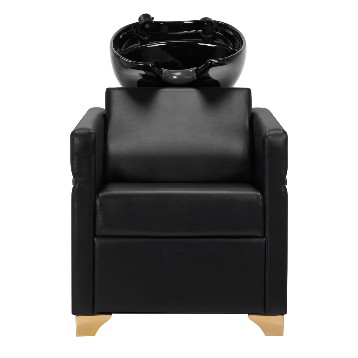 Gabbiano Toledo Haarwaschstation in Schwarz und Gold mit schwarzer Schüssel.