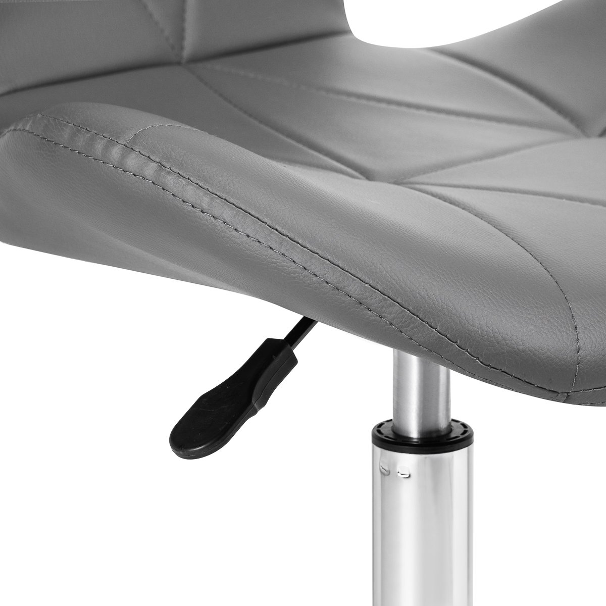 4Rico-Möbel vereinen Funktionalität und Komfort. Die Schminkhocker und -stühle sind in einer großen Auswahl an Mustern, Farben und Bezugsmaterialien erhältlich. Sie setzen in jedem Raum – ob professionell oder privat – stilvolle Akzente. Der komfortable Kosmetikhocker 4Rico QS-06 mit seiner ergonomisch geformten Sitzfläche und bequemen Rückenlehne bietet Komfort in jeder Umgebung – vom Kosmetikstudio über das Nagelstudio bis hin zum Büro oder Empfangsbereich. Auch für Ihr Zuhause ist er perfekt geeignet. Ideal für Profis, die auch bei langen Arbeitstagen Komfort und Funktionalität benötigen. Hoher Sitzkomfort: Dank der effizienten Gasdruckfeder lässt sich die Sitzhöhe stufenlos zwischen 42 und 54 cm verstellen. So können Sie den Stuhl individuell an Ihre Bedürfnisse und die jeweilige Tätigkeit anpassen und genießen höchsten Sitzkomfort – egal ob Sie Make-up auftragen, Ihre Augenbrauen stylen oder anderen Tätigkeiten nachgehen. Die ergonomisch geformte Rückenlehne bietet optimale Unterstützung. Der Stuhl ist mit einem Drehmechanismus ausgestattet, der Arbeitseffizienz und Komfort erhöht. Schlichtheit und Funktionalität: Das Fünf-Stern-Fußkreuz in Chrom-Optik ist mit gummierten Rollen ausgestattet, die für optimale Mobilität sorgen und ein müheloses Umstellen des Hockers im Büro ermöglichen. Der Sitz ist mit einem angenehm weichen Kunstleder in elegantem Grau bezogen. Das verwendete Material ist strapazierfähig, feuchtigkeitsbeständig und pflegeleicht. Stilvolle Ziernähte runden das moderne Design ab. Die genauen Maße entnehmen Sie bitte dem Foto. Im Lieferumfang enthalten sind: Sitz, Fußkreuz mit Gasdruckfeder und Montagesatz. Hubmechanismus: Gasdruckfeder. Rollen: gummiert. Bezugsmaterial: Kunstleder. Bezugsfarbe: Grautöne. Fußkreuzfarbe: Chrom.
