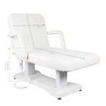 Diese elektrische Kosmetikliege bietet einen großen Höhenverstellbereich von 58 bis 80 cm. Rückenlehne und Höhe lassen sich per Fernbedienung einstellen. Eine Kopfstütze mit Gesichtsöffnung ist in die Rückenlehne integriert. Die Liege ist 75 cm breit und verfügt über eine dicke, sehr bequeme Matratze. Sie ist äußerst stabil und mit hochwertigem Kunstleder bezogen.