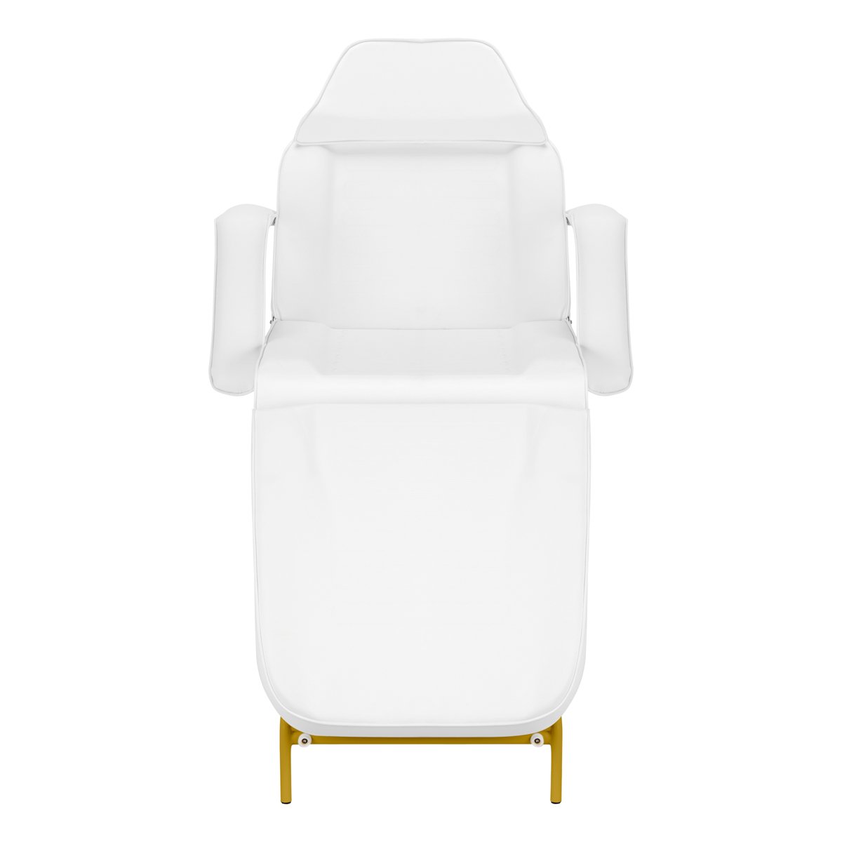 Die Marke ACTIVESHOP bietet seit vielen Jahren ein breites Sortiment an Produkten für den professionellen Einsatz in verschiedenen Branchen. Das Angebot umfasst Artikel aus unterschiedlichen Kategorien – von kleinen, unverzichtbaren Accessoires bis hin zu Spezialgeräten. Schlichtheit und Funktionalität: Der Kosmetikstuhl 557G mit zwei Ablagen ist ein praktisches Arbeitsgerät, das die Arbeitsabläufe in vielen spezialisierten Salons, wie z. B. Kosmetik-, Massage- und Tattoo-Studios, optimiert. Er eignet sich für alle, die Wert auf schlichte, funktionale und zugleich markante Kosmetikmöbel legen. Ausziehbare Behälter unter dem Sitz sorgen dafür, dass die wichtigsten Werkzeuge und Produkte stets griffbereit sind. Praktische Lösungen für mehr Arbeitskomfort: Praktische Kunststoffablagen unter dem Sitz ermöglichen einen einfachen Zugriff auf die wichtigsten Werkzeuge. Die ausziehbaren Behälter sind robust, leicht zu reinigen und tragen zur Ordnung am Arbeitsplatz bei. Dank der Öffnung in der Kopfstütze, die unter einem speziell geformten Kissen verborgen ist, eignet sich der Stuhl perfekt für Rückenbehandlungen wie Massagen. Hoher Komfort: Die Armlehnen garantieren dem Benutzer optimalen Halt und Komfort während der Behandlungen. Bei Bedarf lassen sie sich leicht entfernen, sodass der Behandler die zu behandelnden Bereiche besser erreichen kann. Diese zweigeteilten Elemente sind beweglich und passen sich daher optimal an die Position der Rückenlehne an. Die Neigungswinkelverstellung erfolgt manuell über einen Hebel mit Federn. So lassen sich Fußstütze und Rückenlehne stufenlos verstellen. Dies ermöglicht eine optimale Anpassung an individuelle Bedürfnisse für eine effektive und komfortable Behandlung. Der Stuhl kann in eine Liegeposition gebracht werden, was seine Funktionalität deutlich erhöht. Ergonomische Nutzung und modernes Design: Das Metallgestell – dank seiner seidenmatten Oberfläche in Antikgoldtönen und der schlanken Beine – wirkt elegant und fügt sich harmonisch in den Raum ein. Die feste Sitzhöhe sorgt für eine konstante Sitzfläche und damit für hohen Sitzkomfort. Der Stuhl ist mit Schaumstoff gepolstert und mit Kunstleder in Weißtönen bezogen. Dieses Material macht den Stuhl bequem, feuchtigkeitsbeständig und pflegeleicht. Sorgfältig konturierte Nähte verleihen dem Sitz eine ergonomische Form. Das schlichte Design und die klassischen Farben ermöglichen es, den Stuhl in jedes Interieur zu integrieren. Die genauen Maße entnehmen Sie bitte dem Foto. Das Set beinhaltet: Sitz mit Rückenlehne und Fußstütze, zwei Tabletts, ein Paar Armlehnen, ein Kissen für die Öffnung, Tablettschienen, Gestellelemente und ein Montageset. Details: Gestellfarbe: Altgoldtöne; Bezugsfarbe: Weißtöne; Bezugsmaterial: Kunstleder; Sitzhöhe: 76 cm; Länge in voll ausgezogenem Zustand: 184 cm. Die Goldelemente sind lackiert. Mechanische Beschädigungen der Lackierung sind von der Reklamation ausgeschlossen.