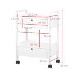 Ein schlichter und funktionaler Tisch aus Metall und Holz von GIOVANNI mit zwei geräumigen, abschließbaren Schubladen. Die Schubladenoberseite dient gleichzeitig als Ablagefläche. Der Tisch ist mit vier Rollen ausgestattet. Erhältlich in Weiß.