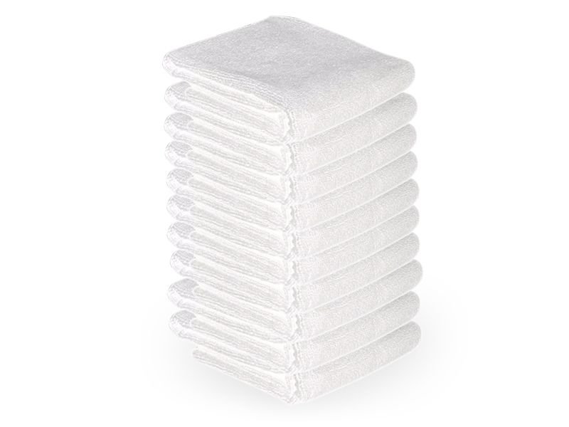 Mikrofaser-Handtücher – aus Mikrofasern, außergewöhnlich saugfähig und strapazierfähig, in Weiß.