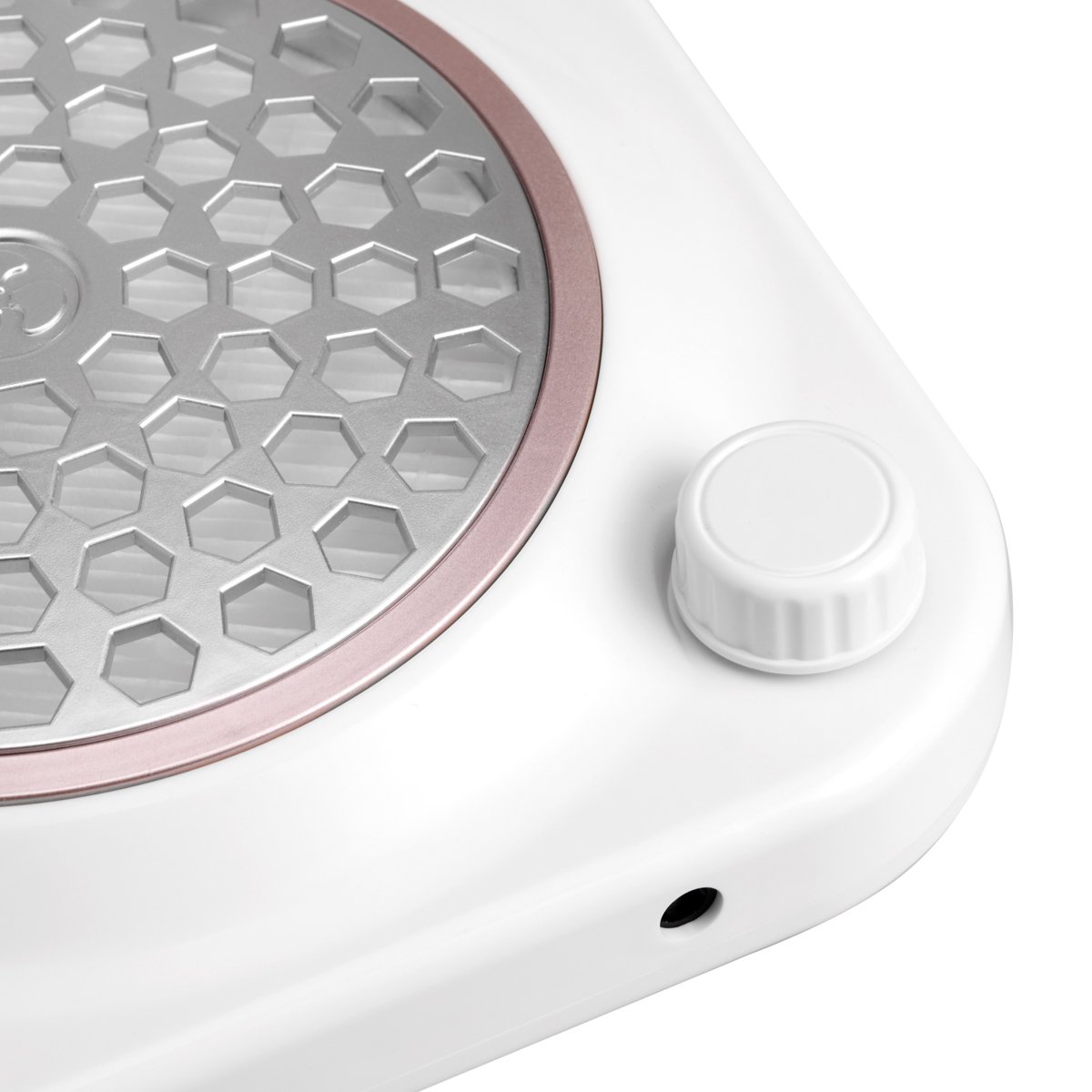 Momo ist ein Hersteller von hochwertigem Zubehör für die Maniküre, darunter Staubabsauggeräte und praktische Halterungen. Die Produkte der Marke eignen sich perfekt für den täglichen Gebrauch. Eine große Auswahl an Modellen und praktischen Lösungen wird selbst die anspruchsvollsten Anwender zufriedenstellen. Das effiziente Kassetten-Staubabsauggerät Momo J007 schützt die Lunge von Mitarbeitern und Kunden effektiv vor Staub, der beim Arbeiten mit Fräsmaschinen entsteht. Hohe Leistung und ein effizienter Filter gewährleisten Komfort und Sicherheit bei Behandlungen wie Maniküre und Pediküre. Ein leistungsstarker Ventilator mit effektivem Filter sorgt für hohe Hygienestandards im Kosmetikstudio und ist die Basis für sicheres Arbeiten. Ein Hochgeschwindigkeitsventilator mit einer einstellbaren Drehzahl von bis zu 4500 U/min gewährleistet eine hervorragende Luftreinigung von Staub, der bei der Nagelpräparation entsteht. Das Gerät saugt den Staub effizient ab, der anschließend direkt auf einem Spezialfilter landet, der selbst kleinste Partikel auffängt und einen Rückstand hinterlässt. Halten Sie Ihren Arbeitsplatz sauber und frei von schädlichem Staub. Durchdachte Funktionen für Sicherheit und Komfort. Der beutellose Staubabsauger Momo J007 verfügt über einen Drehknopf zur Regulierung der Saugleistung, sodass Sie die Leistung optimal an die jeweilige Behandlung anpassen können. Ein akustisches Signal zeigt an, ob der Ventilator ein- oder ausgeschaltet ist. Belüftungsöffnungen an der Unterseite des Geräts gewährleisten eine optimale Luftzirkulation. Dadurch kann der Ventilator über längere Zeiträume kontinuierlich laufen, wodurch das Risiko einer Überhitzung minimiert wird. Effizienter Filter: Der austauschbare Kartuschenfilter sorgt für effektive Luftreinigung während der Behandlung und hält den Arbeitsplatz sauber und frei von schädlichem Staub. Er lässt sich leicht trocknen, z. B. mit einem Föhn. Nach dem Drehen kann die Abdeckung arretiert werden und gewährleistet so einen sicheren Stand während der Behandlung. Minimalistisches Design: Dank seiner leichten Bauweise und kompakten Abmessungen ist das Gerät in nahezu jeder Umgebung komfortabel einsetzbar und eignet sich auch für mobile Anwendungen. Die schlanke, elegante Form der Haube verleiht ihm ein ansprechendes Aussehen. Ein schlichter weißer Kunststofffuß, eine seidenmatte graue Abdeckung und ein seidenmatter Zierring in Roségold verleihen dem Gerät einen minimalistischen Look und fügen sich harmonisch in jede Einrichtung ein. Die verwendeten Materialien garantieren Langlebigkeit und einfache Reinigung. Rutschfeste Füße gewährleisten die Stabilität des Geräts während des Gebrauchs. Lesen Sie die Bedienungsanleitung vor Gebrauch sorgfältig durch. Im Lieferumfang enthalten: Dunstabzugshaube mit Ventilator, austauschbarer Filter, Netzteil.
