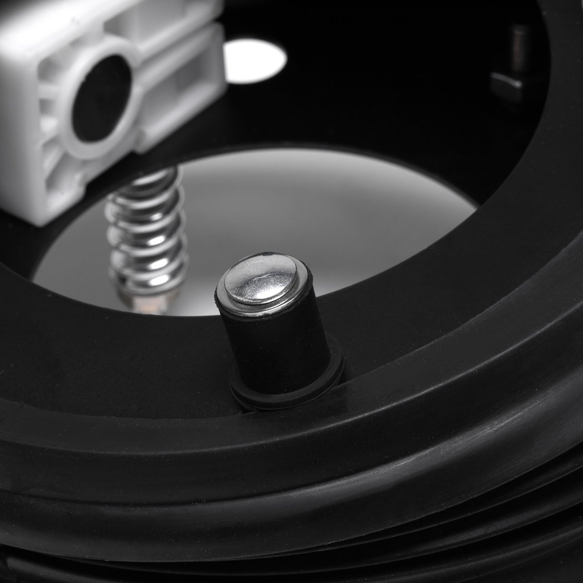 Abmessungen: Höhe: 8 cm, Durchmesser des Schwenkarms: 22 cm, Diagonale zwischen den Schrauben: 17 cm, Durchmesser der Siphonöffnung: 10 cm