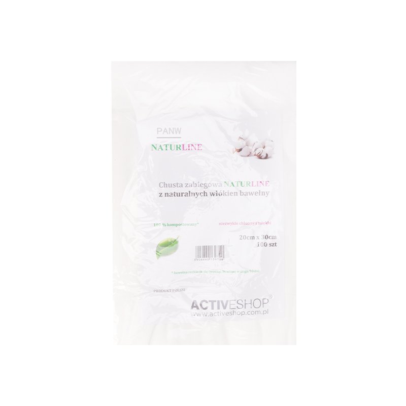 NATURLINE BAUMWOLLSCHAL 20 x 30 cm, 100 Stück. Ein kompostierbarer Schal aus natürlichen Baumwollfasern. Ideal für die tägliche Pflege. Er ist saugfähig, besonders sanft und reizt die Haut nicht. Kosmetiktücher aus Baumwolle in drei Größen: 20 cm x 30 cm, 100 Stück.