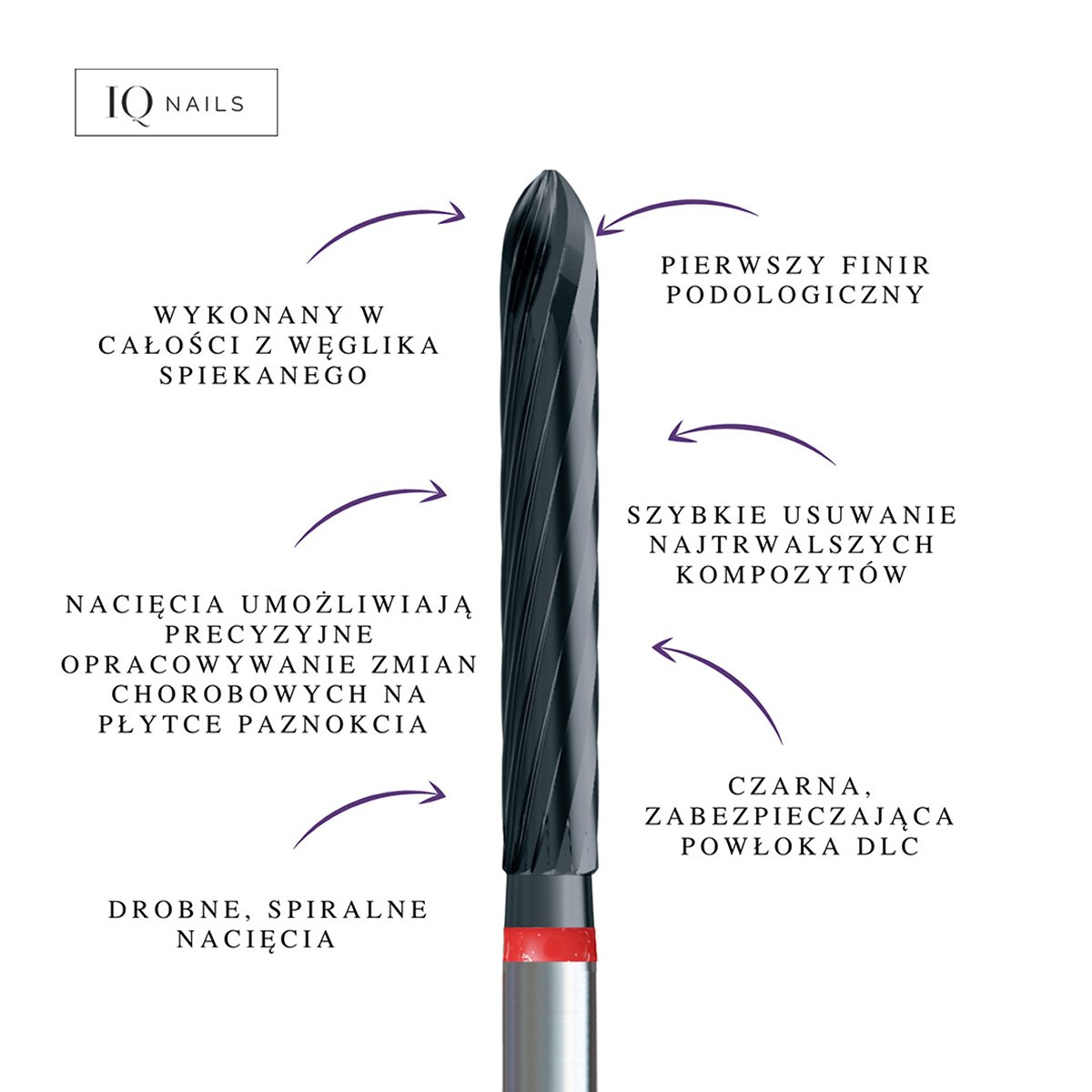 Der Podologische Finisher von Znany Podolog ermöglicht dank seiner feinen Spiralschnitte und des speziellen Neigungswinkels die Entfernung von podologischen Kompositen und Kompositmaterialien. Die optimale Schnittdichte gewährleistet ein gleichmäßiges und effizientes Arbeiten. Das Instrument besteht vollständig aus Sinterhartmetall und garantiert so sicheres und kontrolliertes Arbeiten. Die Schärfe und Schnitttiefe ermöglichen zudem eine schnelle und präzise Bearbeitung von Material und Läsionen in der Nagelplatte. Der Fräser ist mit einer speziellen DLC-Beschichtung (Diamond-Like Carbon) geschützt, die extrem hart, verschleiß- und korrosionsbeständig ist und insbesondere bei hohen Drehzahlen optimale Leistung erbringt.
