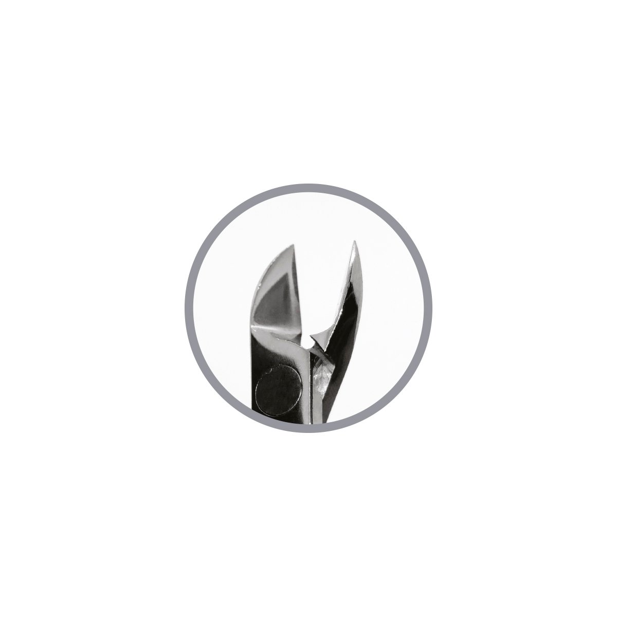 Gerader (seitlicher) Nagelknipser mit abgerundeter Spitze. Die hochwertigen Klemmen sind aus Edelstahl gefertigt.