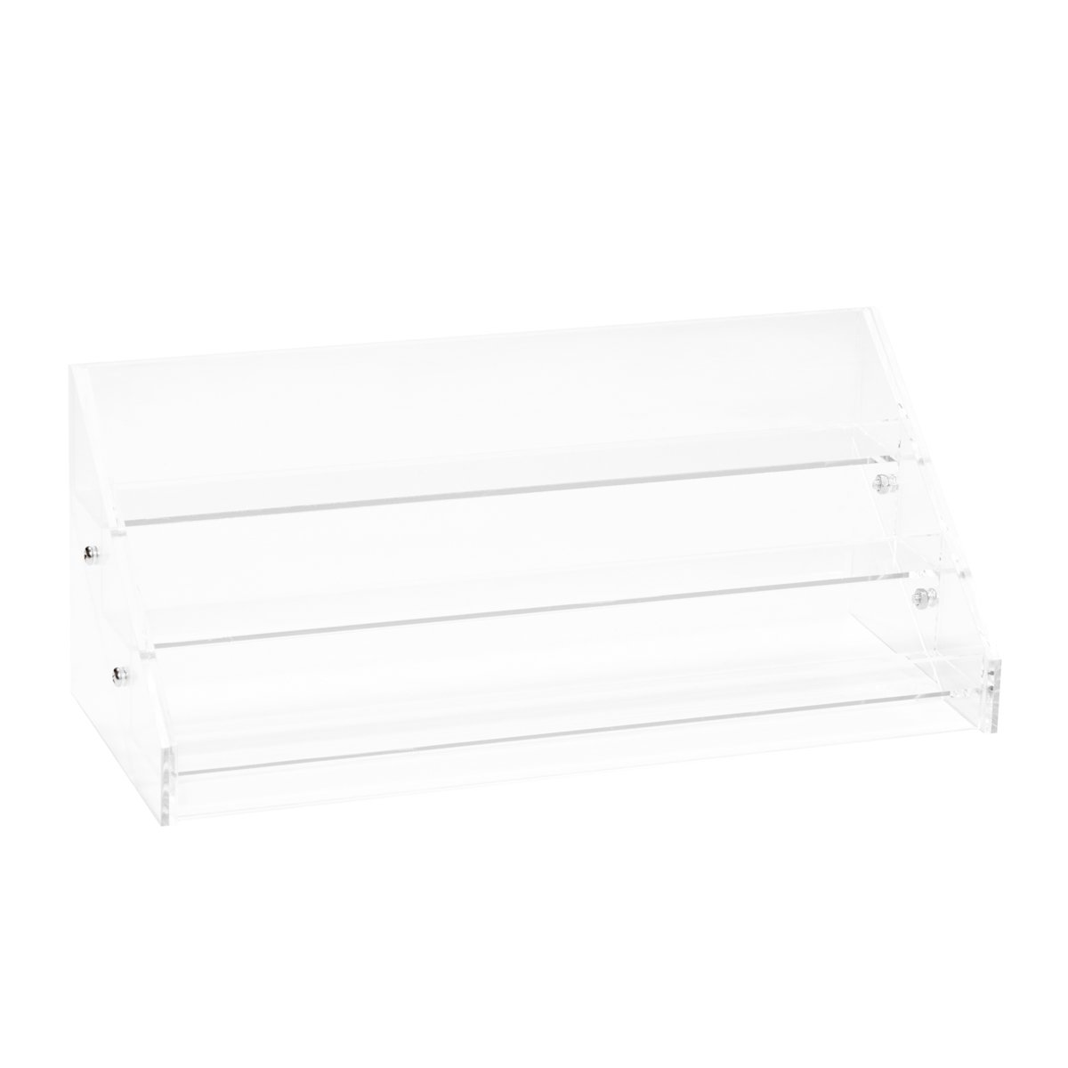 Dieses Nagellack-Display eignet sich perfekt für professionelle Kosmetikstudios und den Heimgebrauch. Es bietet eine einfache und effektive Möglichkeit, Nagellackfarben zu präsentieren und übersichtlich zu organisieren. Dank des transparenten Materials lässt sich die gewünschte Farbe schnell finden und der Füllstand der Nagellacke jederzeit überprüfen. Die professionelle Optik sorgt für ein ordentliches Erscheinungsbild, und das platzsparende Design des Ständers fügt sich harmonisch in nahezu jedes Zimmer ein. Es ist sowohl für klassische als auch für Gel-Nagellacke geeignet und kann auch zur Aufbewahrung anderer Kosmetikprodukte oder Schmuck verwendet werden. Der Ständer verfügt über drei Ablagen mit Kantenschutz und bietet Platz für bis zu 24 Gel-Nagellacke. Alternativ können drei tiefere und eine flachere Ablage genutzt werden, wodurch sich die Kapazität auf bis zu 36 Nagellacke erweitert. Das Material ist leicht zu reinigen; verwenden Sie einfach milde Seife und Wasser. Dieser praktische Organizer ist nach dem Zusammenbau sofort einsatzbereit. Die benötigten Schrauben sind im Lieferumfang enthalten. Maße des Displays: 30 x 12,5 x 12 cm. Abmessungen des Regals: 18,5 x 3,5 x 4,3 cm.
