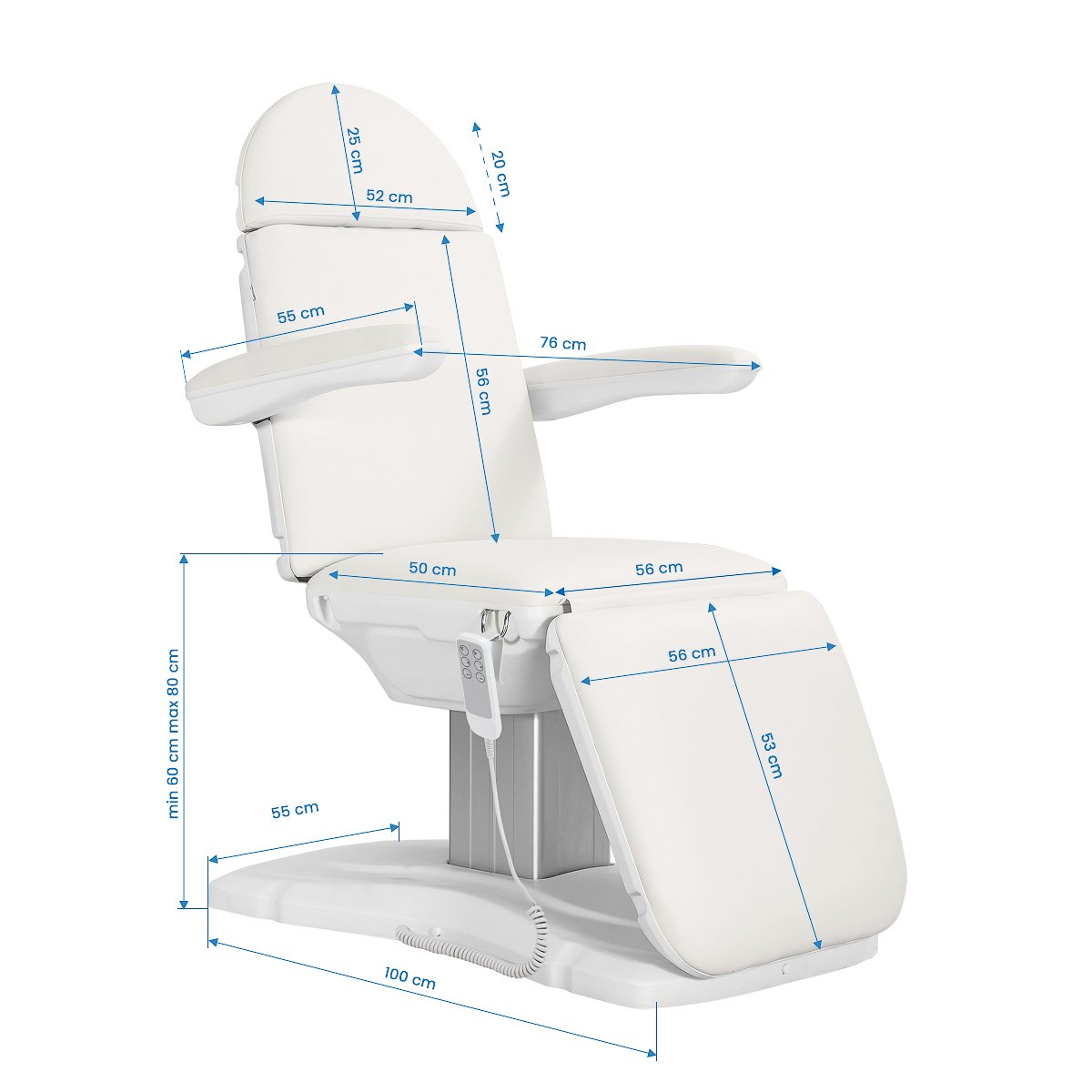 Sillon Eclipse elektrischer Kosmetikstuhl, 3 Motoren, weiß