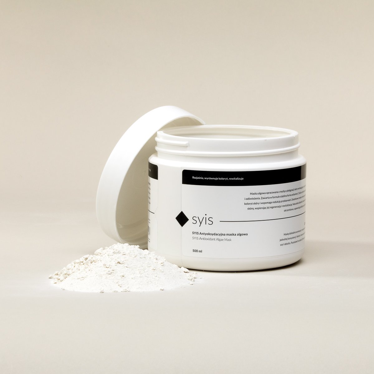Inhalt: 500 ml. Inhaltsstoffe (INCI): Kieselgur, Algin, Glucose, Kaliumalginat, Calciumsulfat, Ascorbylglucosid, Zitronenöl, Tetranatriumpyrophosphat, Natriumcarbonat, Geraniol, Parfum, Linalool, Limonen, Linalylacetat, Hexylcinnamal, Alpha-Isomethylionon, Terpineol, Hexamethylindanopyran, Cumarin, synthetischer Fluorphlogopit, CI 77891, CI 77491, Zinnoxid. SYIS ist eine polnische Marke für professionelle Kosmetik, die mit dem Ziel effektiver Pflege entwickelt wurde. Sie zeichnet sich durch hochwertige Wirkstoffe aus, die den Bedürfnissen moderner, bewusster Kunden gerecht werden.