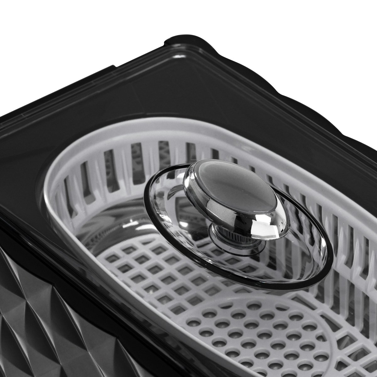 • Temperatur. Lesen Sie die Bedienungsanleitung vor Gebrauch sorgfältig durch. Im Lieferumfang enthalten: Reinigungsbehälter, Deckel, Netzkabel, Kunststoffkorb. Abmessungen des Reinigungsbehälters: 20 x 12 x 10 cm. Abmessungen des Korbs: 14 x 6 x 4 cm.