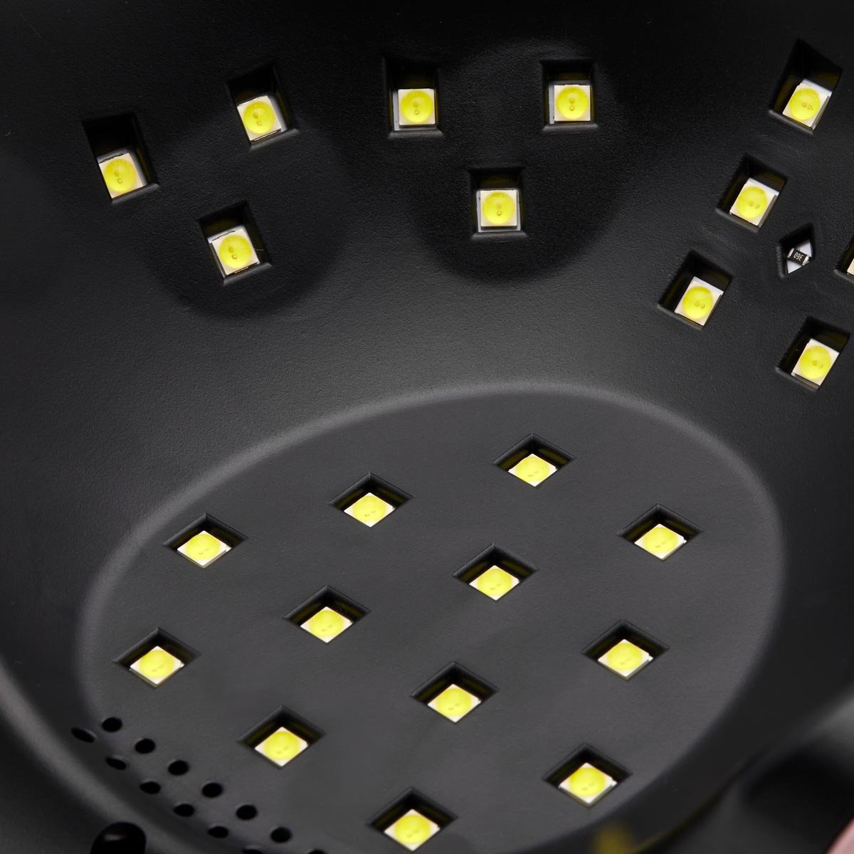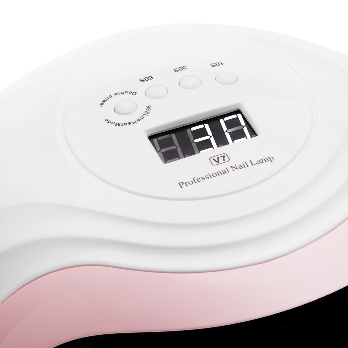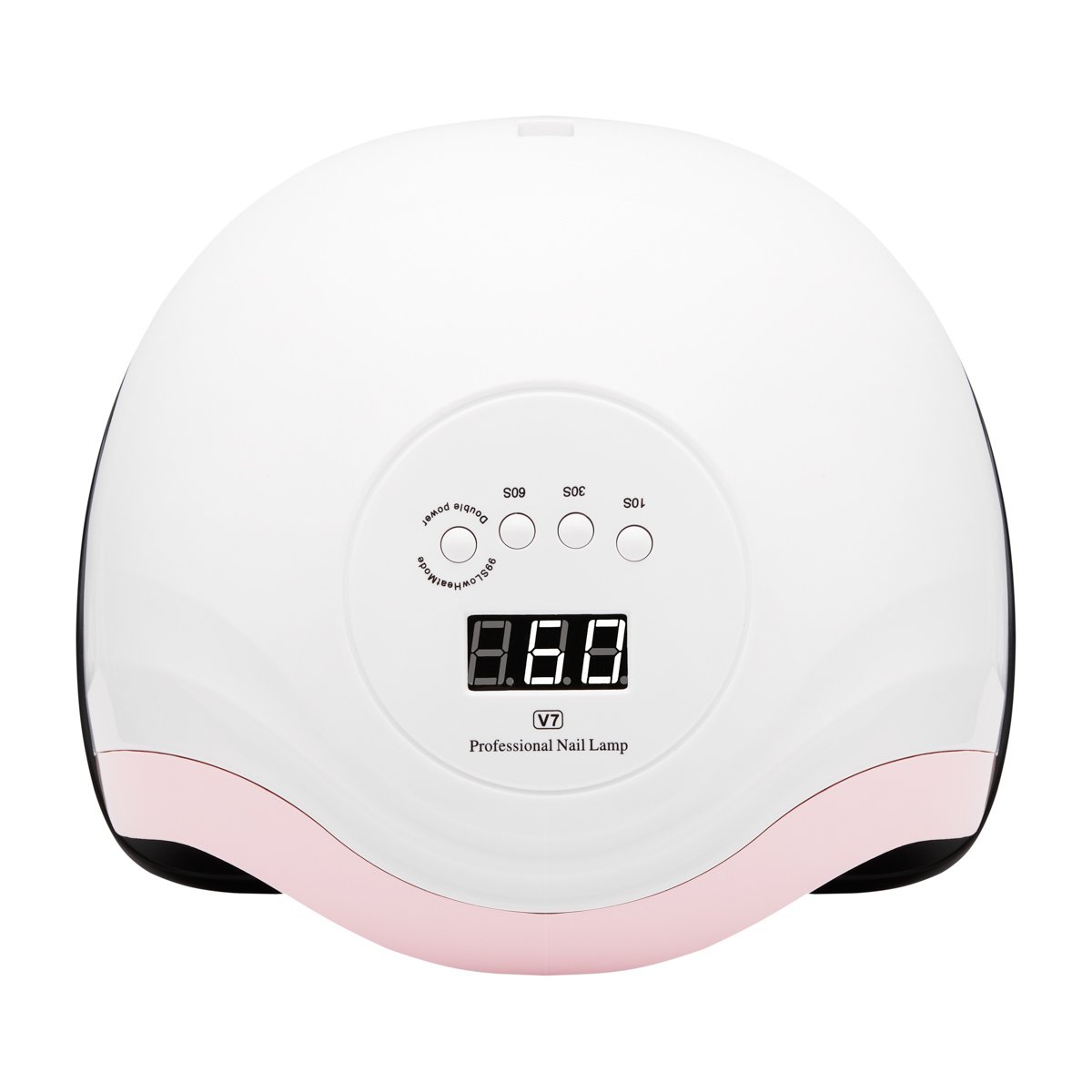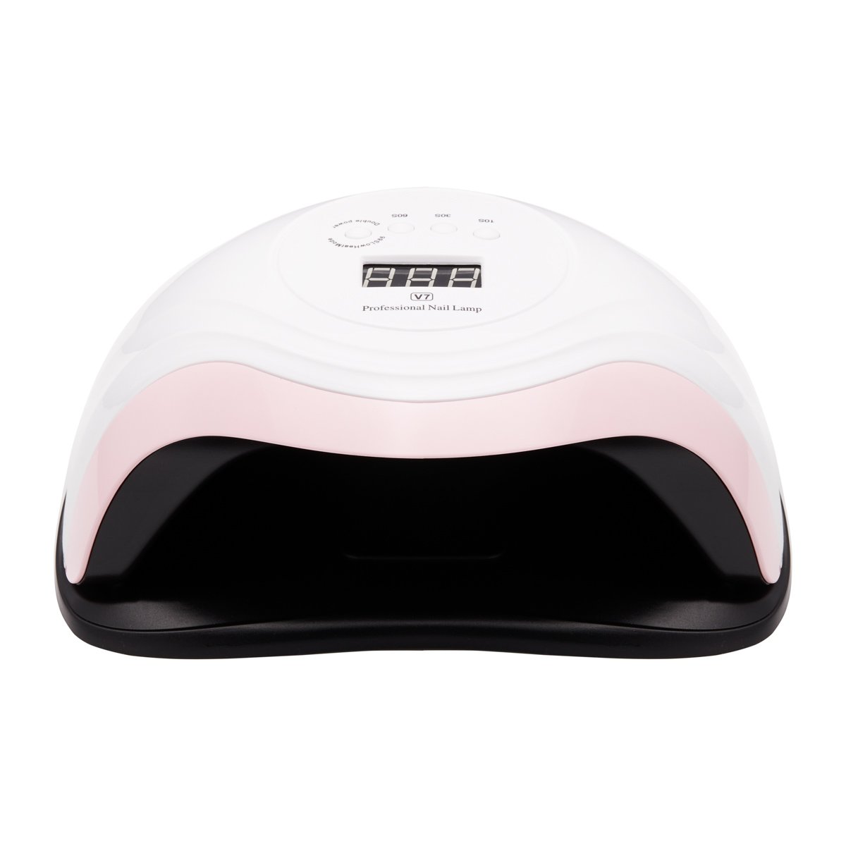 V7 168W UV-LED-Lampe. Diese hochmoderne, professionelle UV/LED-Lampe härtet dank Dual-LED-Technologie alle Gele, Hybridlacke und andere lichthärtende Produkte schnell und gleichmäßig aus. Sie emittiert augenschonendes, weißes Licht. Die V7-Lampe verfügt über eine energiesparende, leistungsstarke Lichtquelle mit zwei Wellenlängen von 365 nm und 405 nm. 36 LEDs liefern eine maximale Gesamtleistung von 168 W. Die Lampe ist mit einem Bewegungssensor und Timern (10, 30, 60 und 99 Sekunden) ausgestattet und leuchtet nach der Aktivierung bis zu 99 Sekunden lang. Der 99-Sekunden-Modus „Niedrige Wärmeentwicklung“ erhöht die Lampenleistung alle 30 Sekunden schrittweise. Dadurch wird ein Brennen beim Auftragen von Aufbaugelen vermieden. Ein großes elektronisches Display ermöglicht die einfache Überwachung der Zeit. Betriebszeiten: 10 s, 30 s, 60 s, 99 s; Lichtspektrum: 365 nm, 405 nm; Lebensdauer: 50.000 Stunden
