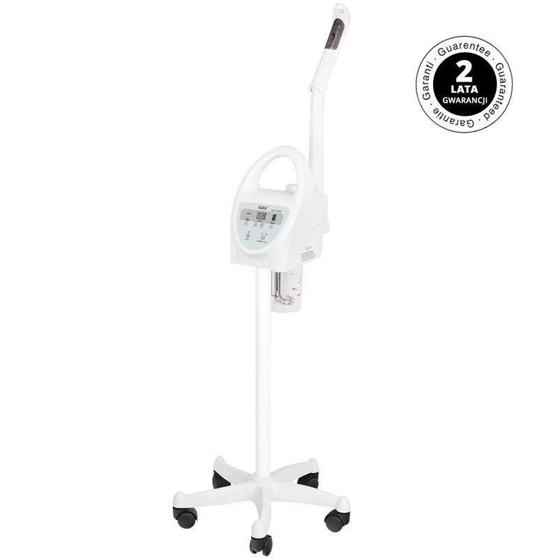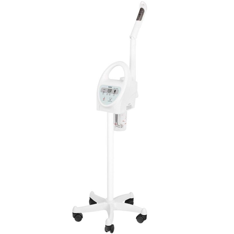 Eine multifunktionale Dampfdüse mit Warmdampf, Aromatherapie und Ozonfunktion sowie einstellbarer Dampfintensität. Die schwenkbare Düse ermöglicht die gezielte Ausrichtung des Dampfstrahls auf den Kunden. Die Dampfdüse ist auf einem Ständer montiert. Dieses Gerät ist in jedem Kosmetikstudio unverzichtbar.